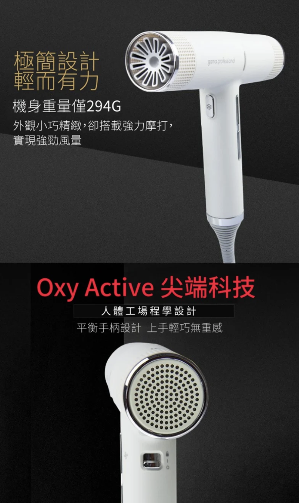 是世界上最輕巧強效的專業風筒,結合人體工學設計,避免造成肩頸肌肉損傷,也讓長髮族夏天不會吹到汗水狂噴!使用比負離子高一階的活氧技術,IQ Perfetto 能吹出活氧 O3,鎖住毛鱗片、有效延長褪色,吹整後髮絲帶來光澤效果,跟毛躁與塌髮說BYE BYE。