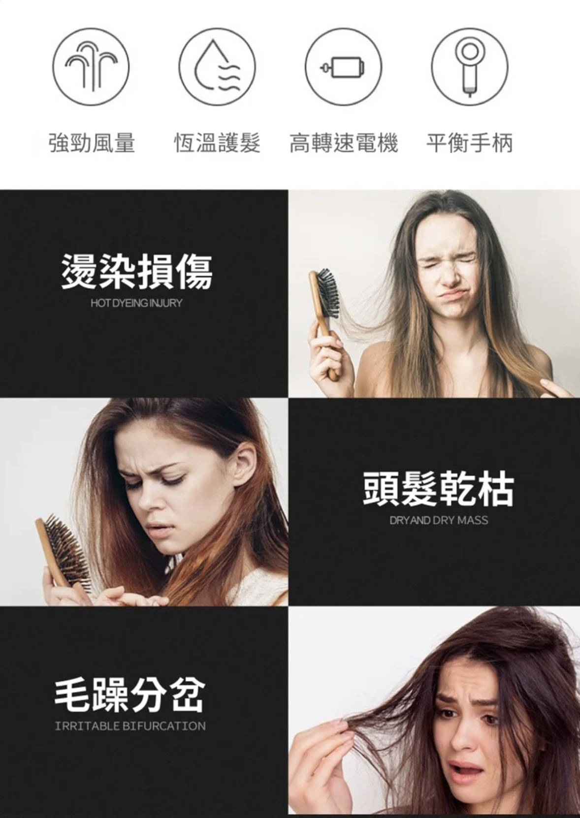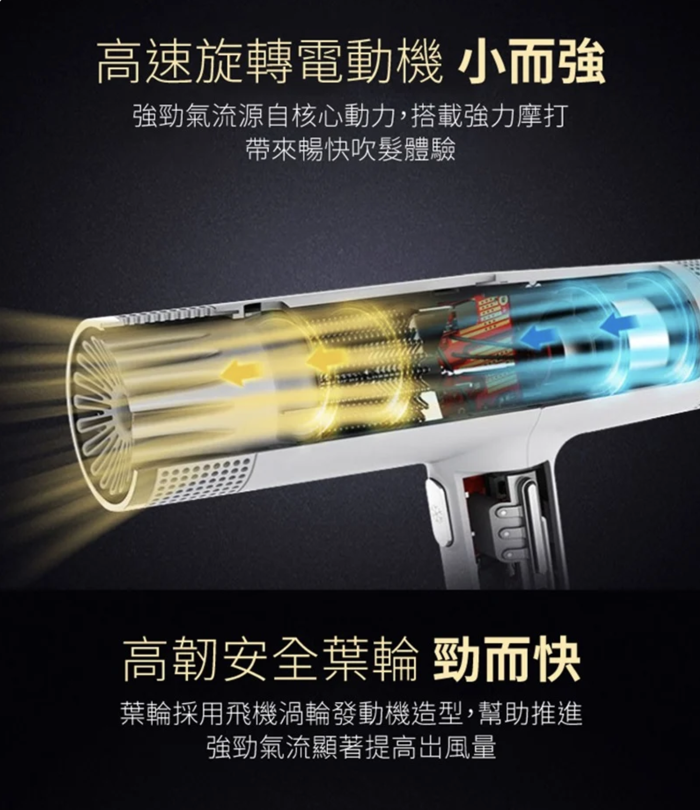 ✔ 感溫技術:智能無刷馬達內建電子控制,電機轉速 110,000rpm/功率1500W