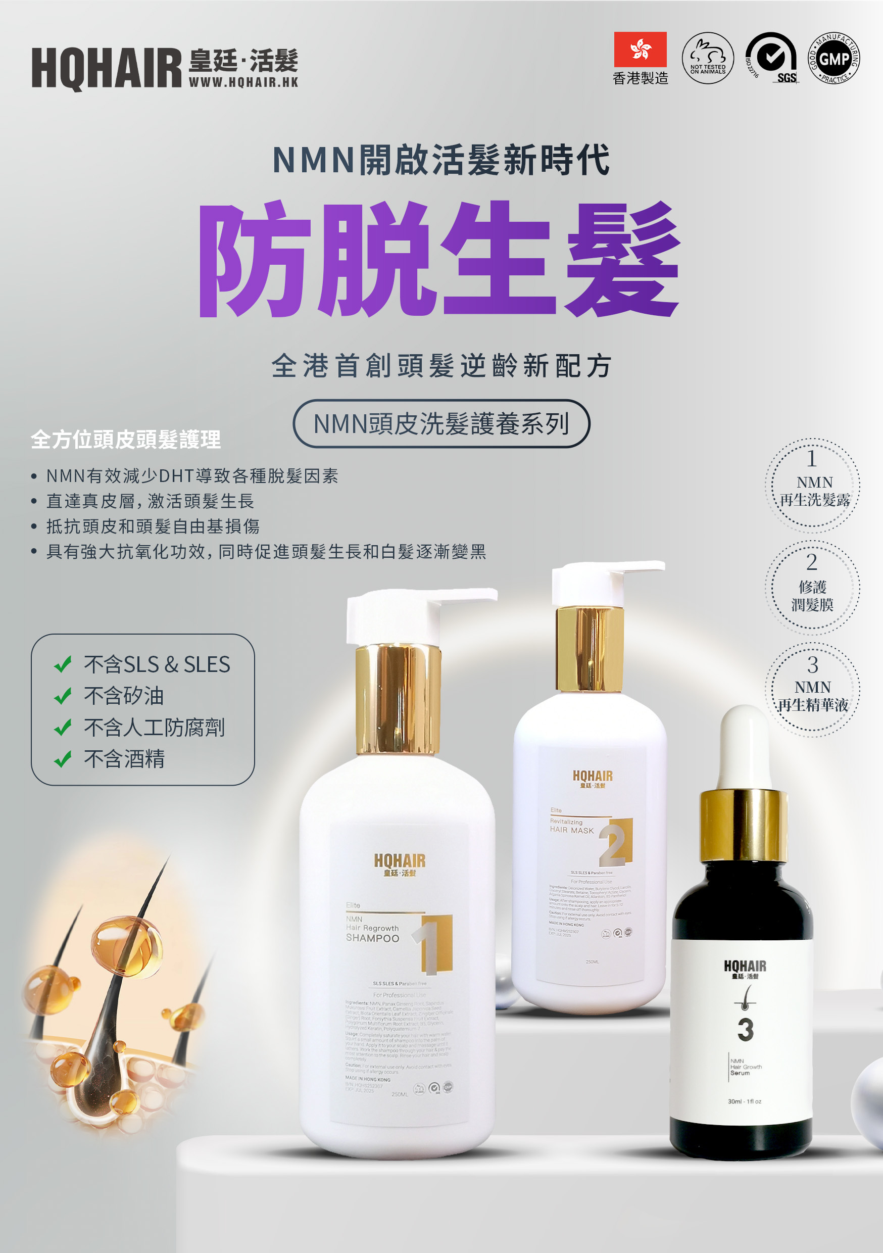 想頭髮烏黑豐盈,其實要有一套全方位的潔淨與修護組合,而且更要顧及髮絲與頭皮的需要,才可以由根本開始,即是由毛囊長出新髮起,持續照顧已長出的頭髮,配合頭髮的新陳代謝循環作出長期養護,就是最佳的頭髮逆齡之選!